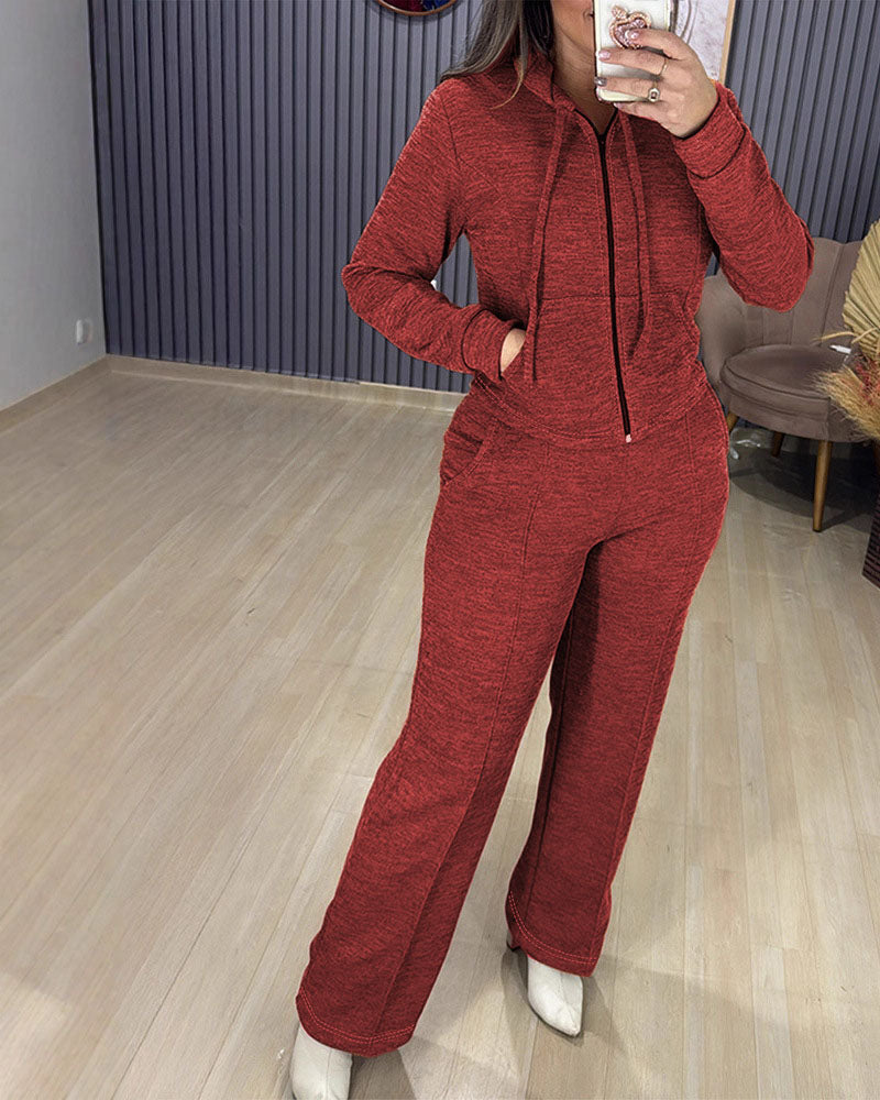 Athleisure Hooded Jacket Wide Leg Pants Set